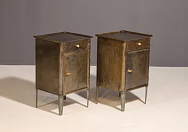Pair of metal industrial bedside tables, Czechoslovakia, 1960s