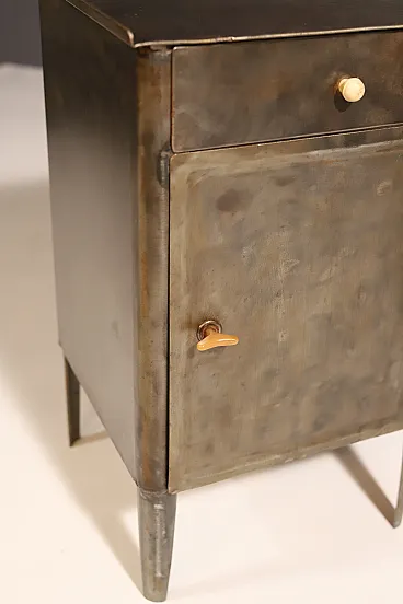 A pair of night stands in a industrial style. Made in the former Czechoslovakia in the 1960´s. It´s made of a brushed metal. Overall in good condition, showing signs of age and using. Price is for the pair. Price is for the pair. Height: 70 cm Width: 40 cm Depth: 40 cm