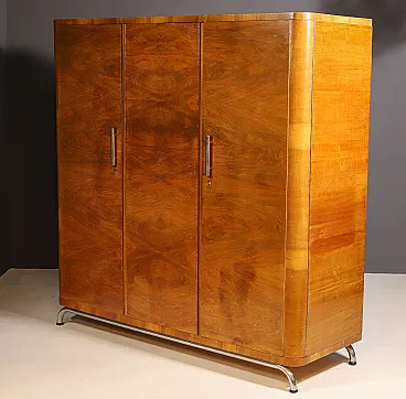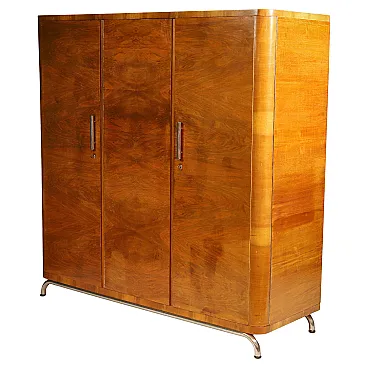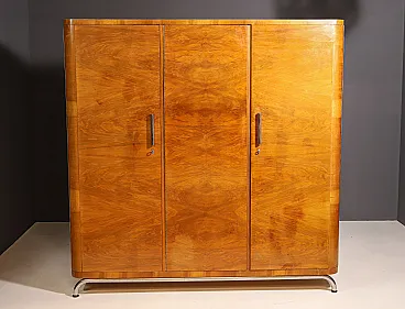 Wardrobe with chrome elements from the Bauhaus period. It made in the former Czechoslovakia. Designed and manufactured by Slezák company in the 1930s.