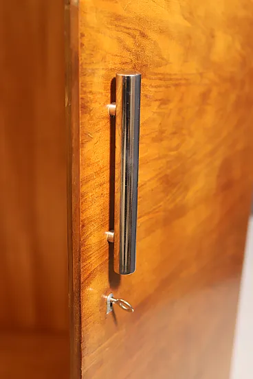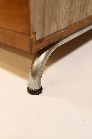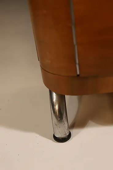 This is a typical example of residential furniture from the Bauhaus period in Central Europe. It has a beautiful walnut veneer and is chrome plated all around with a chrome bar.