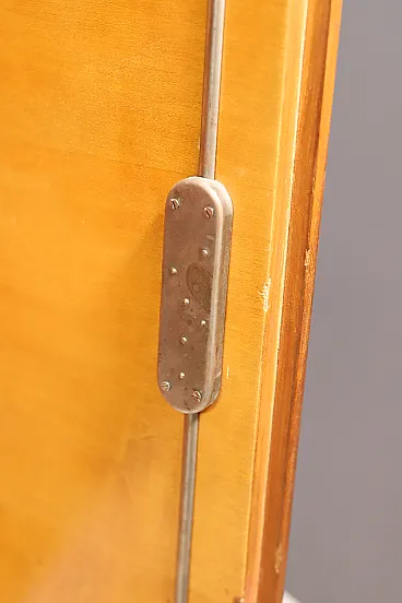 The wardrobe is made of wood, plywood and chrome plated steel. It is in good Vintage condition, shows signs of age and using. The wardrobe is ready to use immediately.