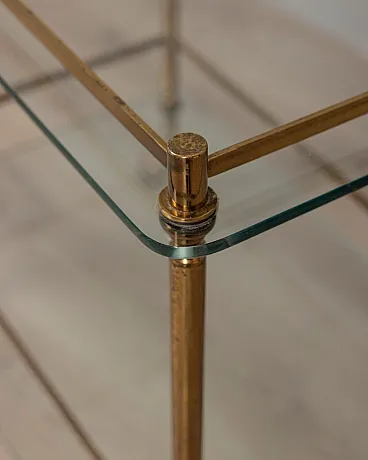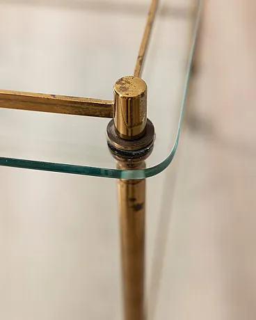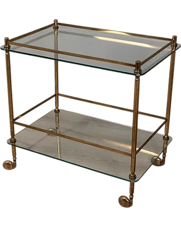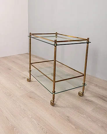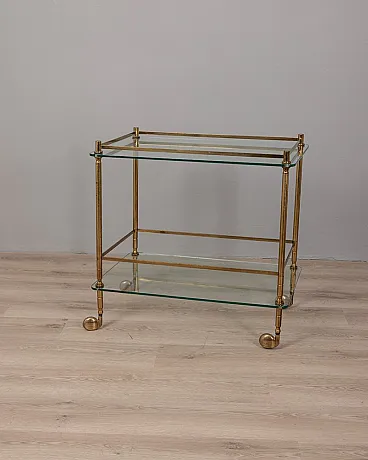 Food trolley with golden brass structure and two transparent glass shelves, Italian design, 1960s.