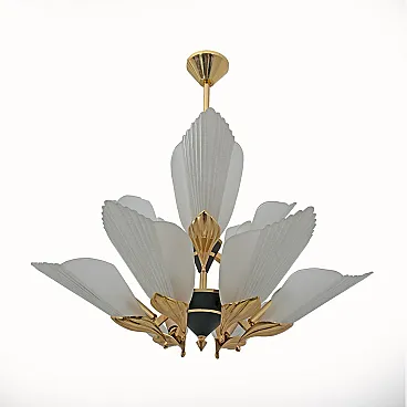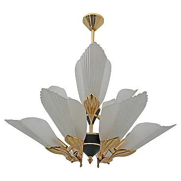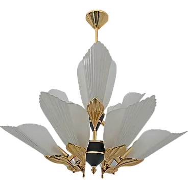 Nine-light brass and etched glass chandelier by F. Fabbian, 1980s