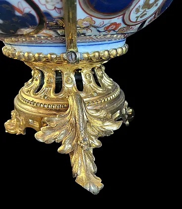 Painted porcelain bowl with chiseled and gilded bronze frame.