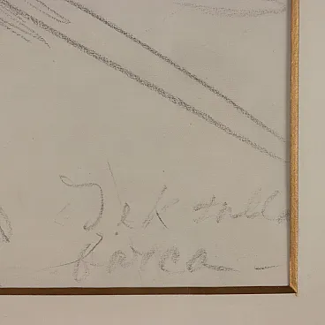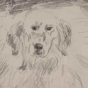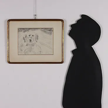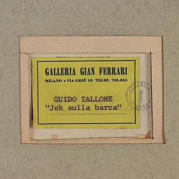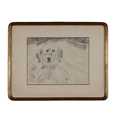 Pencil on paper. Signed lower left; title lower right. On the back is a label from the Galleria Gian Ferrari in Milan, with the artist\'s name and title. Guido Tallone, son of Cesare Tallone, devoted himself mainly to portraiture in the first phase of his life. After the Second World War, his production also developed into genre scenes, portraits of objects dear to him or of his everyday life. His works are distinguished by rapid brushstrokes and bright, brilliant colours, strongly influenced by Impressionism. In this case, a pencil sketch of a dog is presented, called by name, and portrayed on the boat - of which only the bow is sketched - probably a companion on one of the artist\'s trips. Framed.