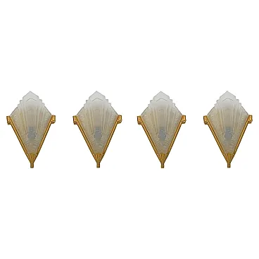 4 Art Deco lamps in pressed glass and brass, 1930s
