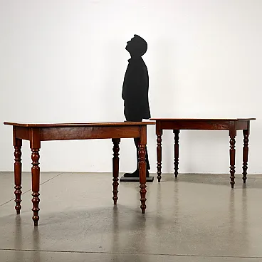 Pair of walnut coffee tables from the mid-19th century made with four turned legs.