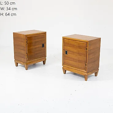 Pair of 50s bedside tables characterized by essential lines and sober geometric shapes.