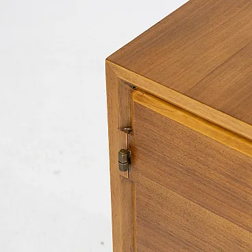 Structure: each bedside table has a single door with a small brass handle built -in of rectangular shape and a dark detail, which adds visual contrast and recalls the hinges in the same material and with a geometric and elegant shape. They are raised from the ground thanks to four flared legs that give lightness to the design. Patina due to age and use "