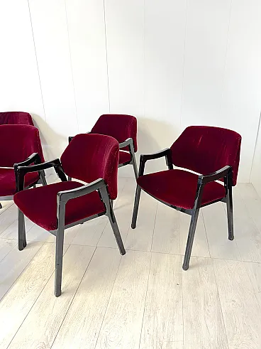 Rare set of eight armchairs produced by Cassina design Ico and Luisa Parisi model 814 year 1961. Frame in black lacquered wood, seat and back upholstered and covered in red velvet.