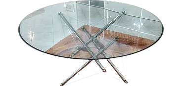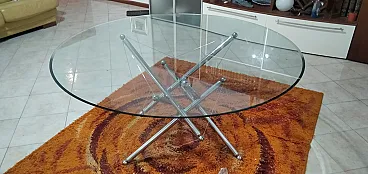 The round table of Theodore Waddell, designed in 1973, was born from a research started in 1956 focused on the design of light and dynamic load -bearing structures, inspired by the architecture of tensile structures. This design masterpiece stands out for its sculptural and elegant impact, where the complex structure consists of six legs. Three of these are suspended, supporting the glass top, while the other three lean gently on the ground, creating an effect of visual lightness and disjunction from the plane. A unique piece that combines refinement and engineering.