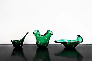 Three Sculptural Vases in Green Glass from Empoli, 1960s