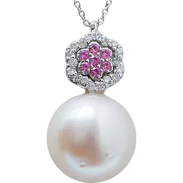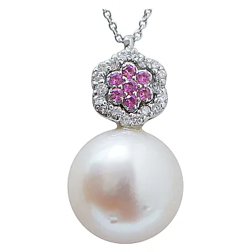 Necklace with South Sea pearls, rubies, diamonds, gold, 2000s