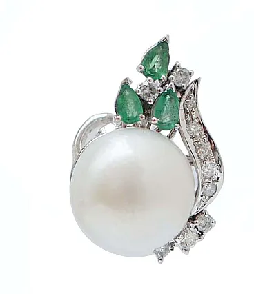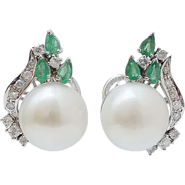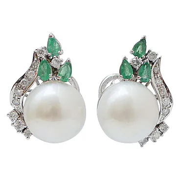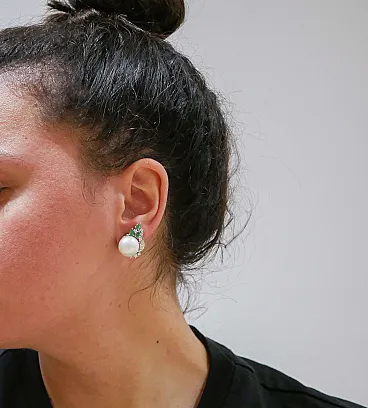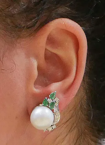 Gold earrings with South Sea pearls, emeralds, diamonds, 1960s