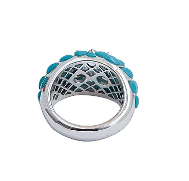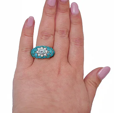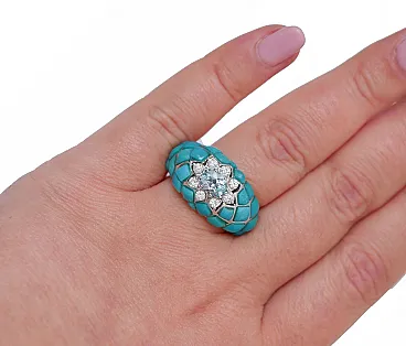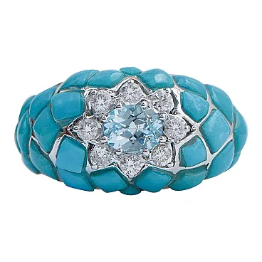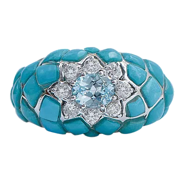 Gold ring with aquamarine, topaz, diamonds, turquoise, 1970s