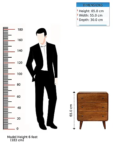 To match the other products from the curved collection, this mini chest of drawers has been constructed from 100% solid mango wood in a rich chestnut finish and stands on 4 Nordic style legs. It features shiny accent knobs on each drawer providing easy access when storing any clothes, towels, duvets, etc. The curved design provides smooth, safe corners and gives the product a modern and contemporary look which is perfect for city homes and apartments. This product is part of the Recession Collection.