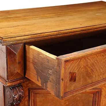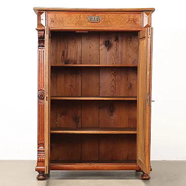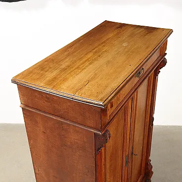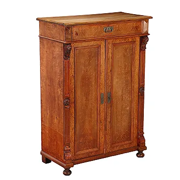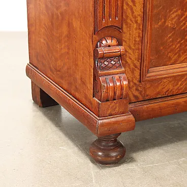 Umbertina sideboard in fir and beech, veneered in mahogany and mahogany feather. Front with under-top drawer and pair of paneled doors, turned feet. Eastern Europe, late 19th century.