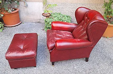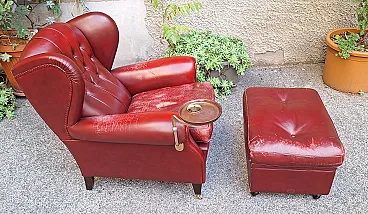 Armchair with pouf and ashtray by Frau for Poltrona Frau, 1980s