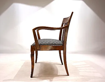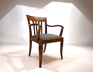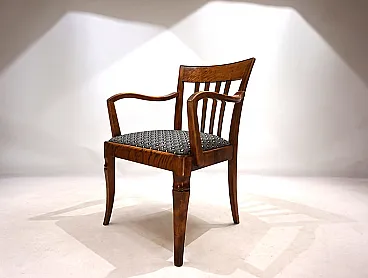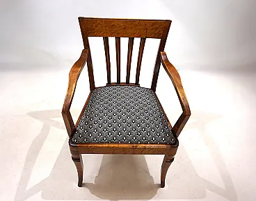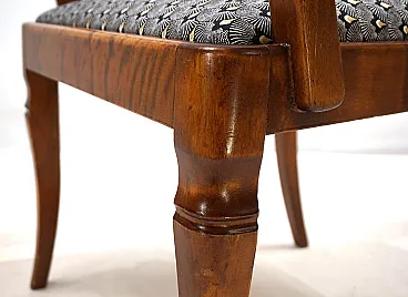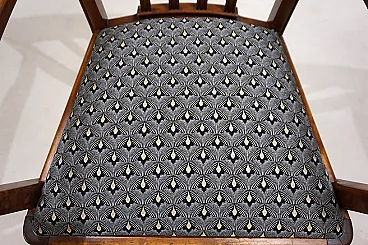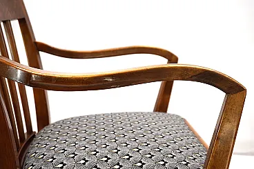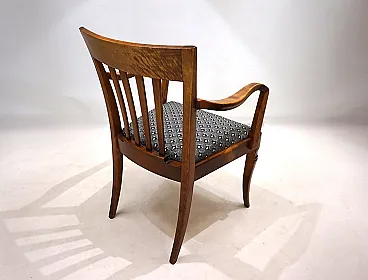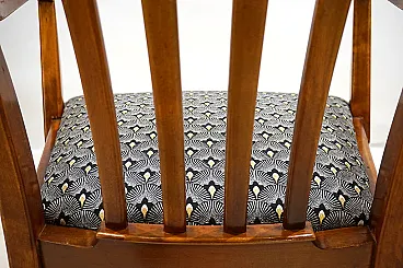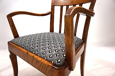 This armchair, unusual for its size, is in excellent condition. The wooden structure, probably of beech, has minimal signs of wear and all joints are solid. The session pillow was covered with an attractive art déco fabric and the suspension is in perfect condition. The extravagant lines of the armrests in combination with the back of the back make this chair a visual call in any environment. Thanks to its size, the chair can also be used as a desk chair. This chair was probably produced in Germany in the 1930s.