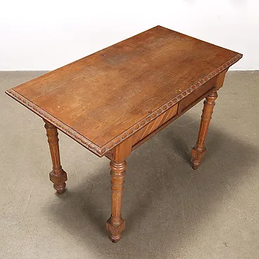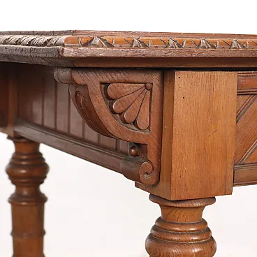 Mid-20th century oak coffee table in neo-Renaissance style with typical carvings.