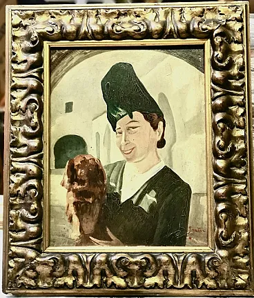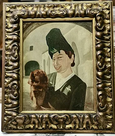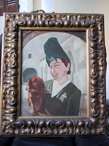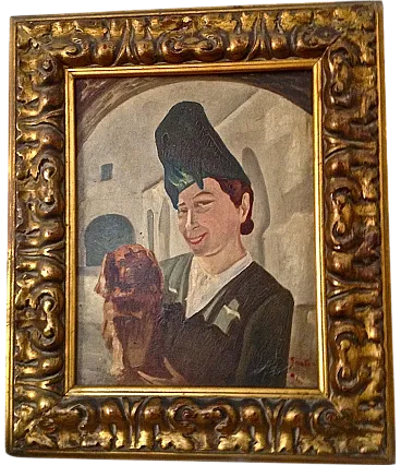 Woman with dog by Iginio Sartori, oil on panel, 1940s