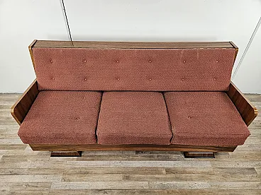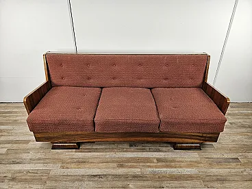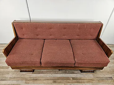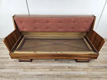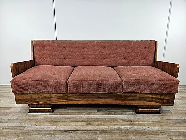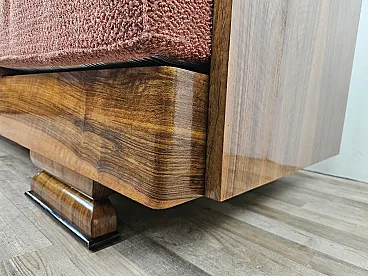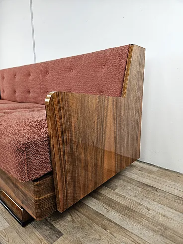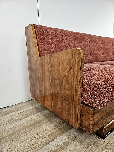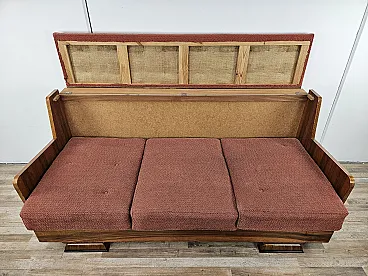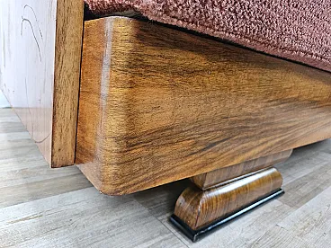 Art Decò sofa in walnut with container and padded cushions, 1940