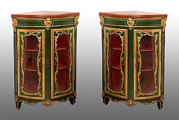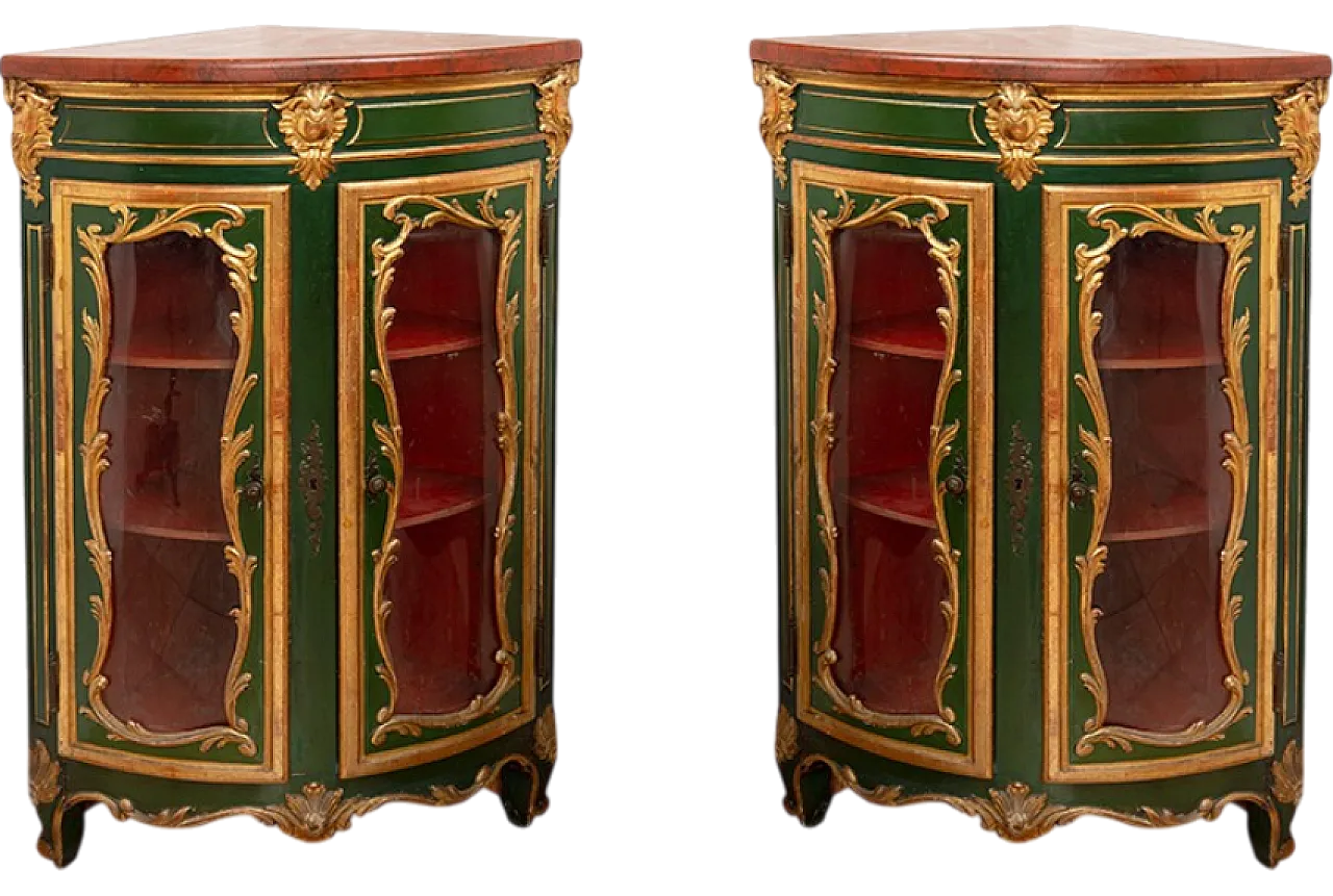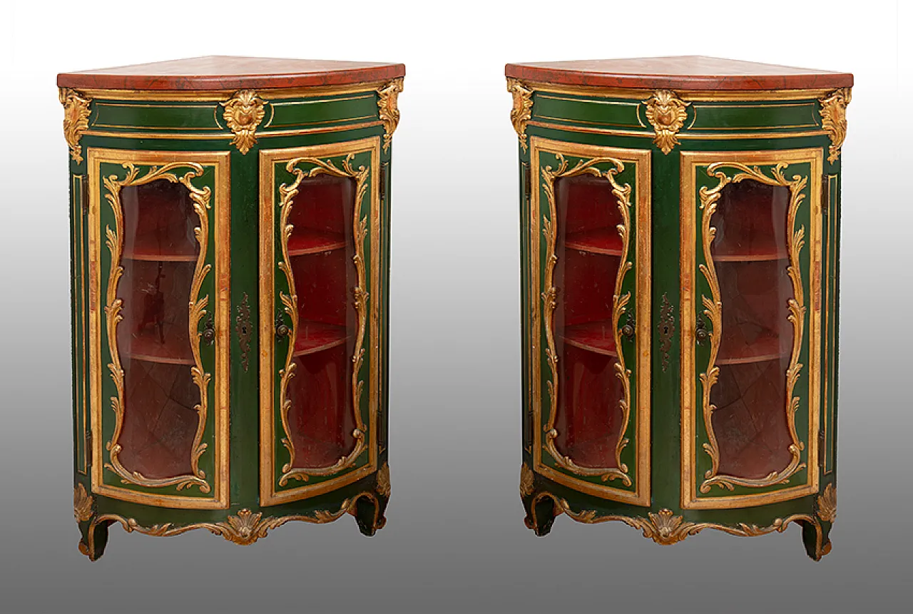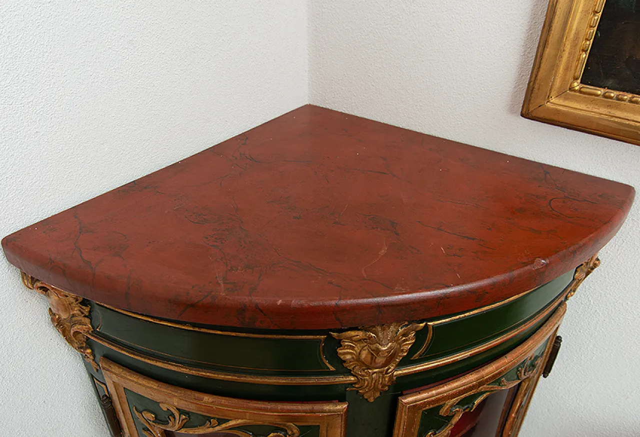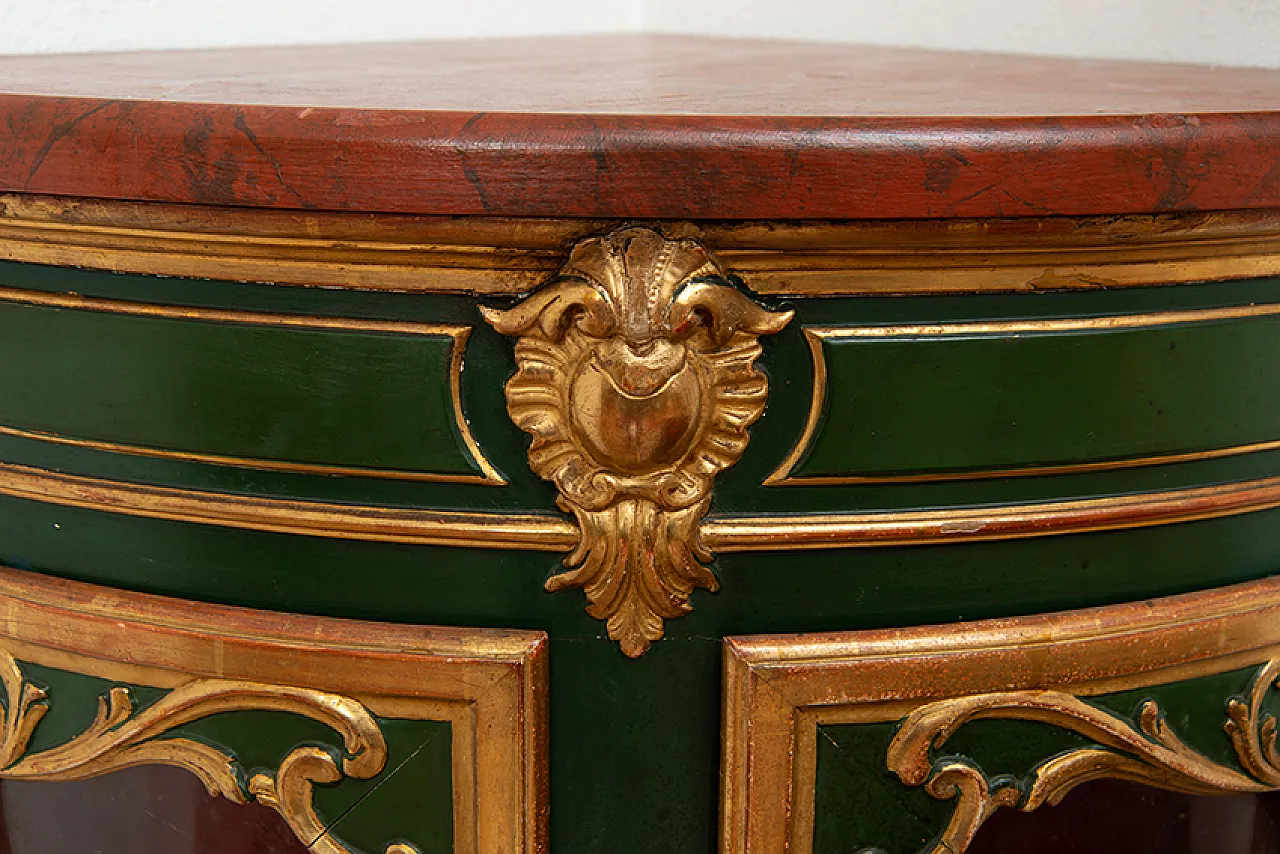 The main front is characterized by two glass doors with golden frames in relief highlighted with the green lacquer of the structure.