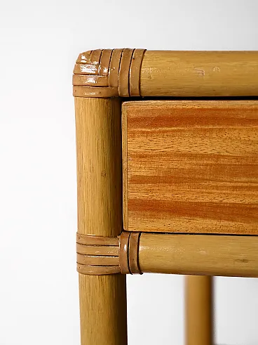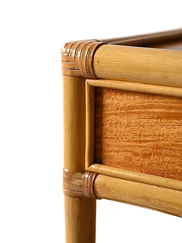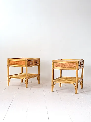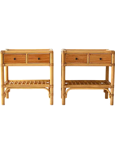 Pair of vintage square bedside tables and with bamboo structure, equipped with two drawers and a door -to -date top. Elegant and functional, they add an exotic and refined touch to any environment.