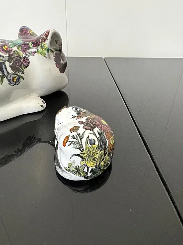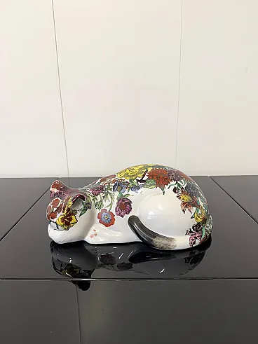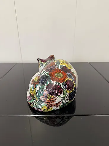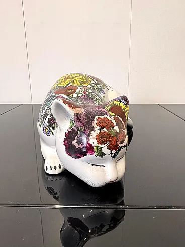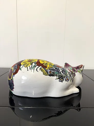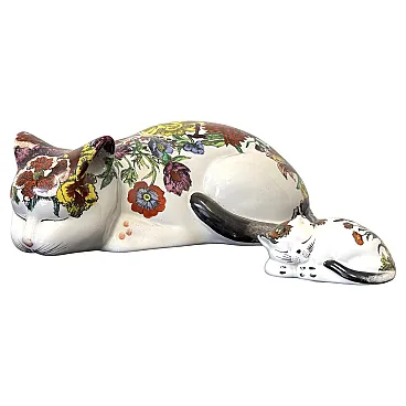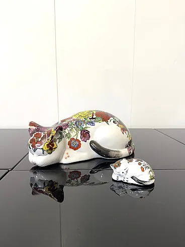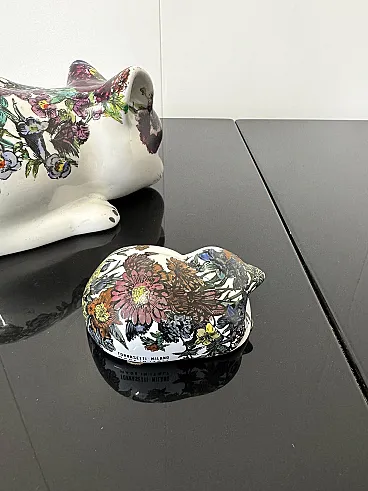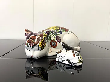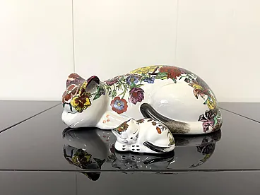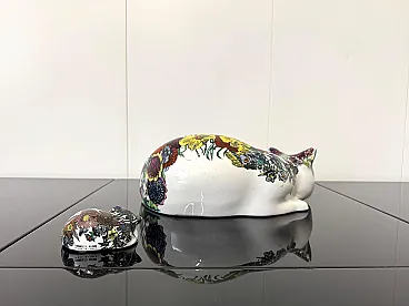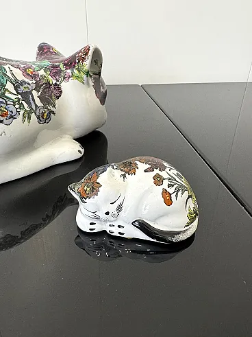 Raro set di ceramiche firmate Fornasetti, formato da gatto e gattino. Ottimo stato di conservazione Gatto 11x30x19 cm Gattino 4x9x5 cm