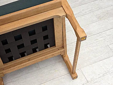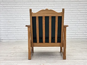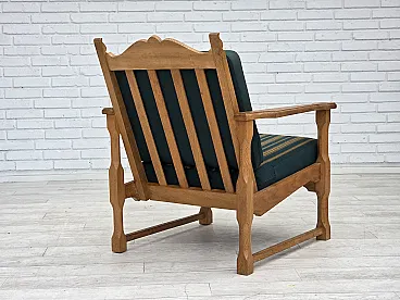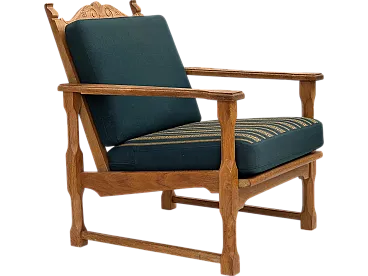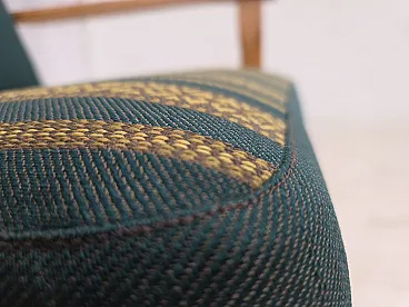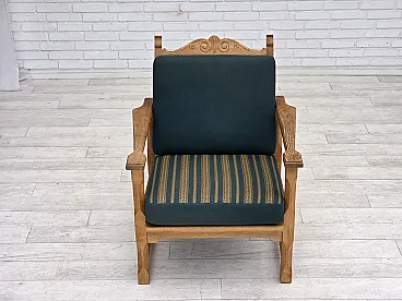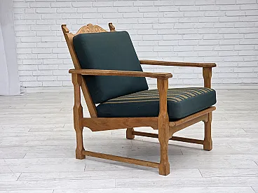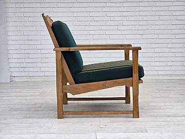Scandinavian lounge chair, green wool, solid oak wood, 70s