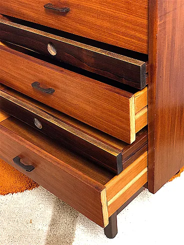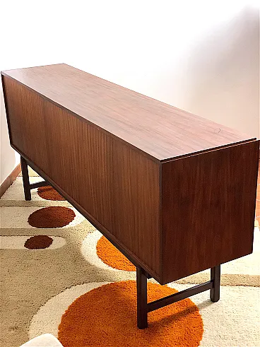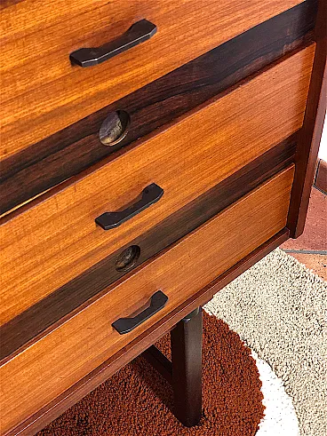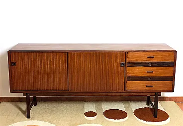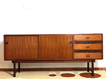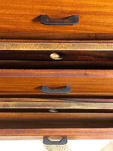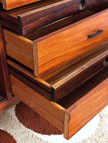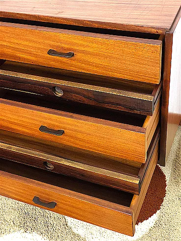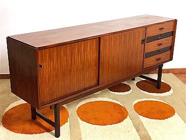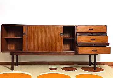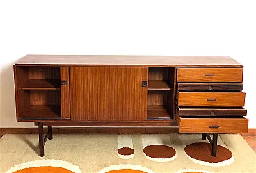 Mobile sideboard Sideboard Barovero by Selex 60s. The minimal and elegant design for this sideboard made by the Barovero company of Turin for the Selex line. The furniture is made with a very high quality and full of details: asymmetrical edges, handles and accessories in bronzed brass, lacquered wood parts. The furniture consists of a pair of sliding side doors and internal shelves, five drawers: three large drawers with metal handles and two small with circular burglary, wooden legs with metal detailed. Made of wood with teak veneer. The sideboard has been completely restored. Perfect condition size: width cm 195 - height 85 cm - 44 cm explosion