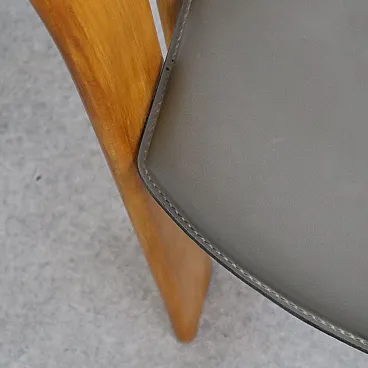 Set of six chairs by Mario Marenco for Mobil Girgi, Italy, 70s A wonderful set of six dining chairs designed by Mario Marenco and produced by the renowned Italian company Mobil Girgi in the 70s. These chairs show the best of Italian craftsmanship, with a solid beech wood structure with an elegantly curved design that enhances both the aesthetic and durability. The sessions are covered in original leather, which over time has developed a splendid patina, adding vintage charm and authenticity. The combination of hot tones of wood and aged skin gives these chairs a timeless charm, making it a perfect addition to any modern or contemporary environment of the mid -century. Dimensions: Height: 39.77 inches (101 cm) Width: 21.66 inches (55 cm) Depth: 19.69 inches (50 cm) In good vintage condition, with signs of usury consistent with age, which further enhance its character. A rare and elegant set that embodies the elegance of Italian design of the 70s.