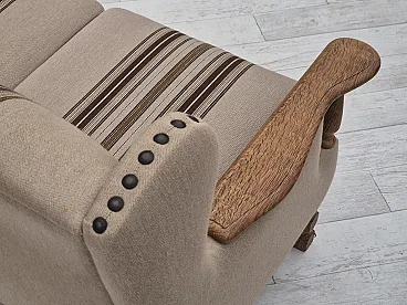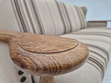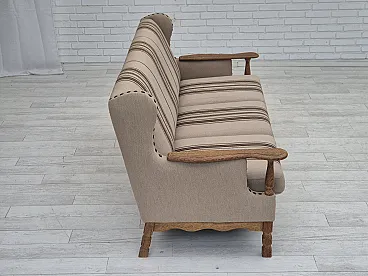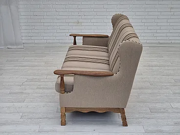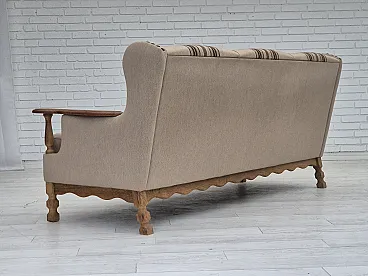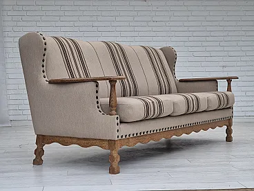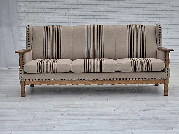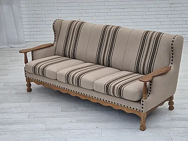 Danish 3-seater sofa, wool fabric, oak wood. 1970s