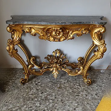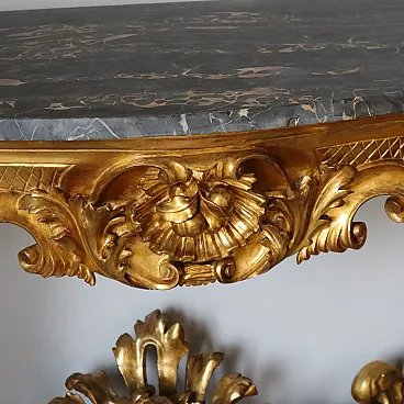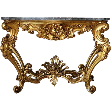 Console in Zecchino gold and Louis XV style marble, mid 19th century