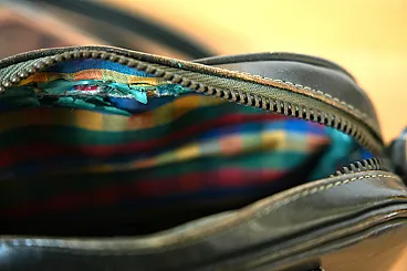 Black Leather Crossbody Bag with Fur Detail, 70s