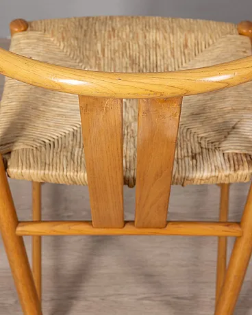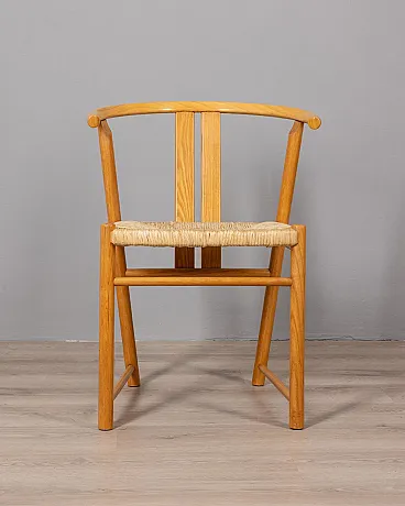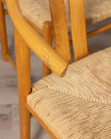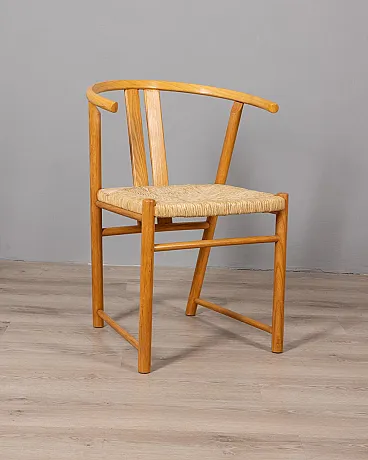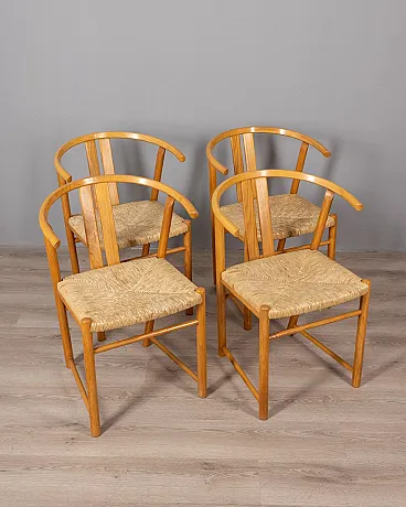 Set of four chairs with oak wood structure and rattan seat, Danish design, 1980s.