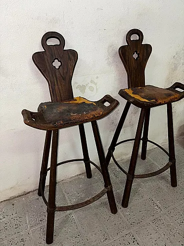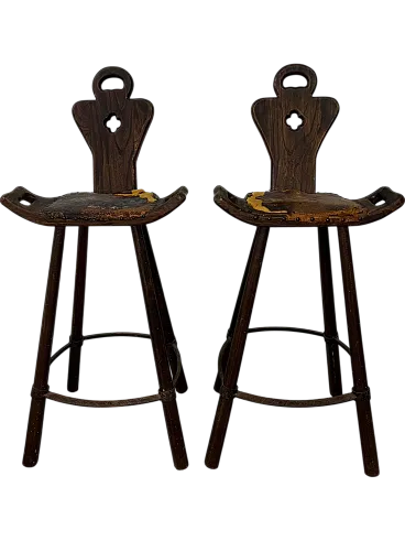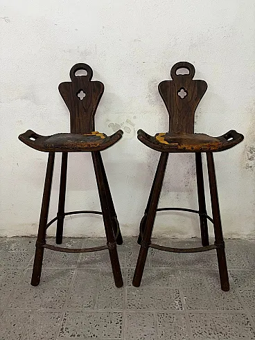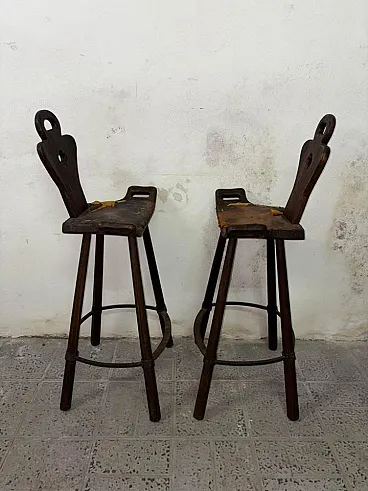 Brutalist wood stools to be restored, however, the sitting is ok 117 cm deep, 33 cm 50 cm 50 cm height seated 83cm.