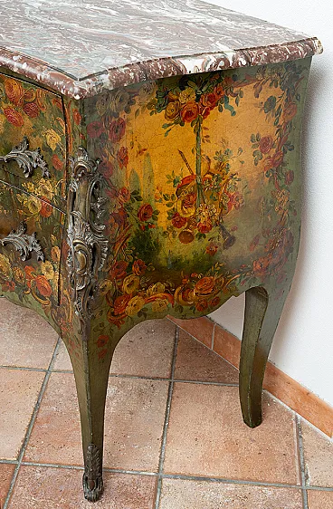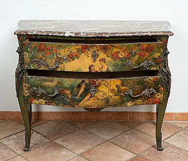 Description: Napoleon III French drawer in green lacquered wood with grafts of polychrome paintings.