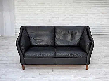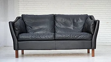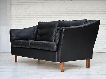 Danish 2-seater sofa, black leather, 1970s