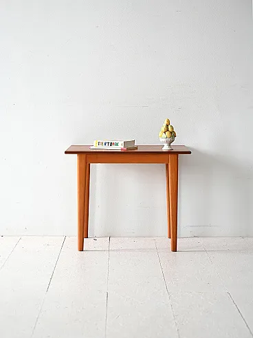 This vintage table was produced by the historic Swedish company Vistaholm in the 1950s-60s, a brand known for its fine wood furniture and functional design. Made of teak, it has a solid structure with essential lines and tapered legs, typical of the Scandinavian Mid-Century style. Perfect as a coffee table or furnishing complement in modern and vintage environments. An authentic piece of Nordic design, ideal for collectors and enthusiasts. Good condition. It may present signs of time. Pleasure pay attention to the photographs.