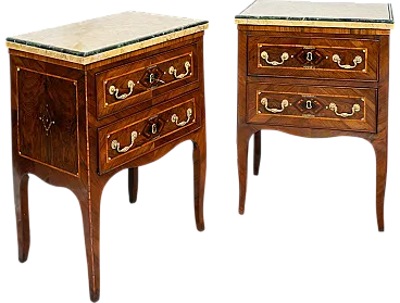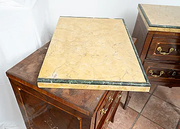 Description: Pair of ancient bedside table Louis XIV Neapolitans in fine woods with ancient yellow marble top.