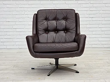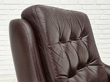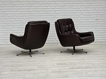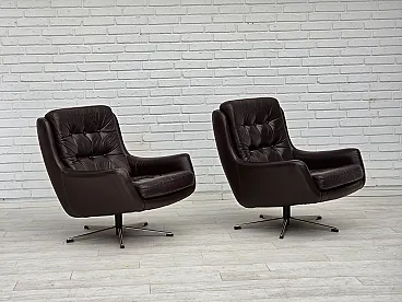 Pair of swivel lounge chairs with footstool, leather, 1970s