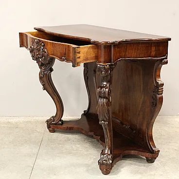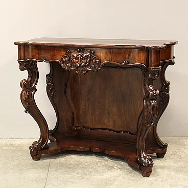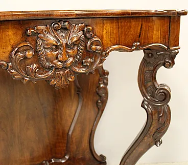 Console Luigi Filippo In solid walnut and nucle cooked Epoca mid 19th century - Luigi Filippo Origin Italy Measures: width 109 cm, depth 52 cm, height 88 cm Restored (see photo)