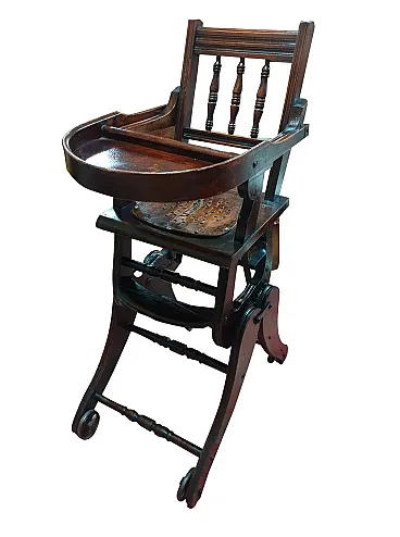 Seggiolone Vittoriano da bambino, legno di faggio, trasformabile, '800 1