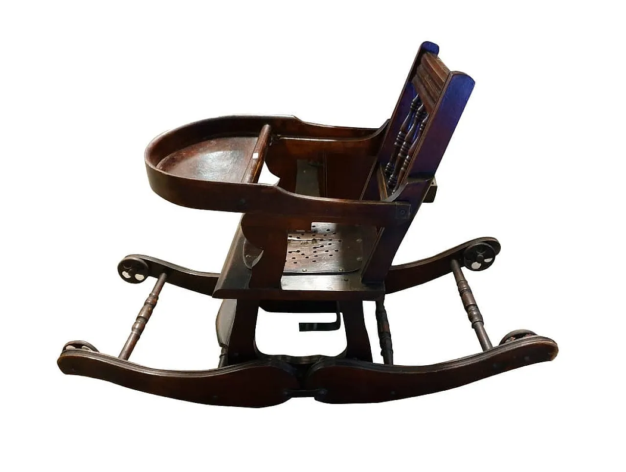 Seggiolone Vittoriano da bambino, legno di faggio, trasformabile, '800 2