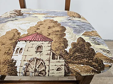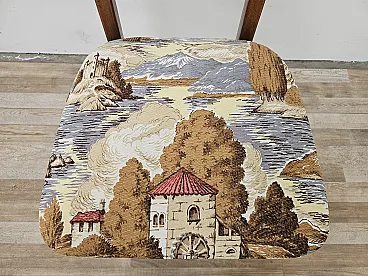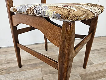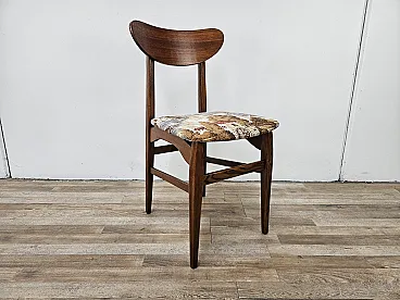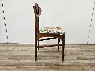 1970s chair for dining room with teak structure and seat just refared with a modern fabric that marries very well with the type of seat. Polished chair in shelver, new seat.