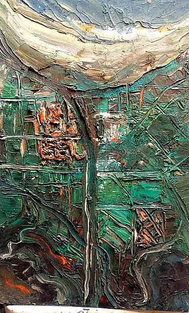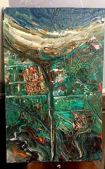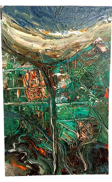 Abstract oil on panel painting by Raffaello Giannelli, 20th century