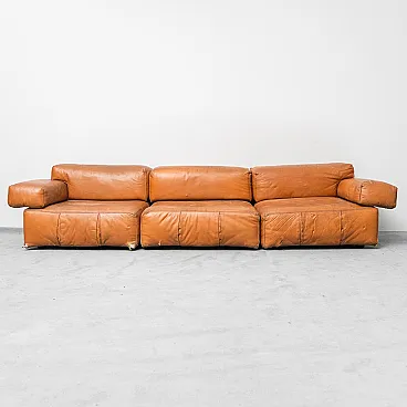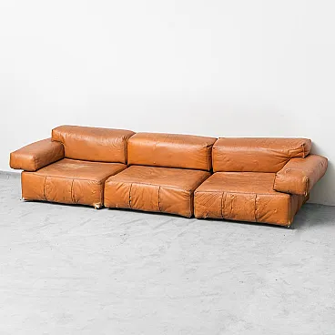 3 -seater modular made in the 70s. Brown leather coating. The object presents evident signs of the time. Refer to the photos.
