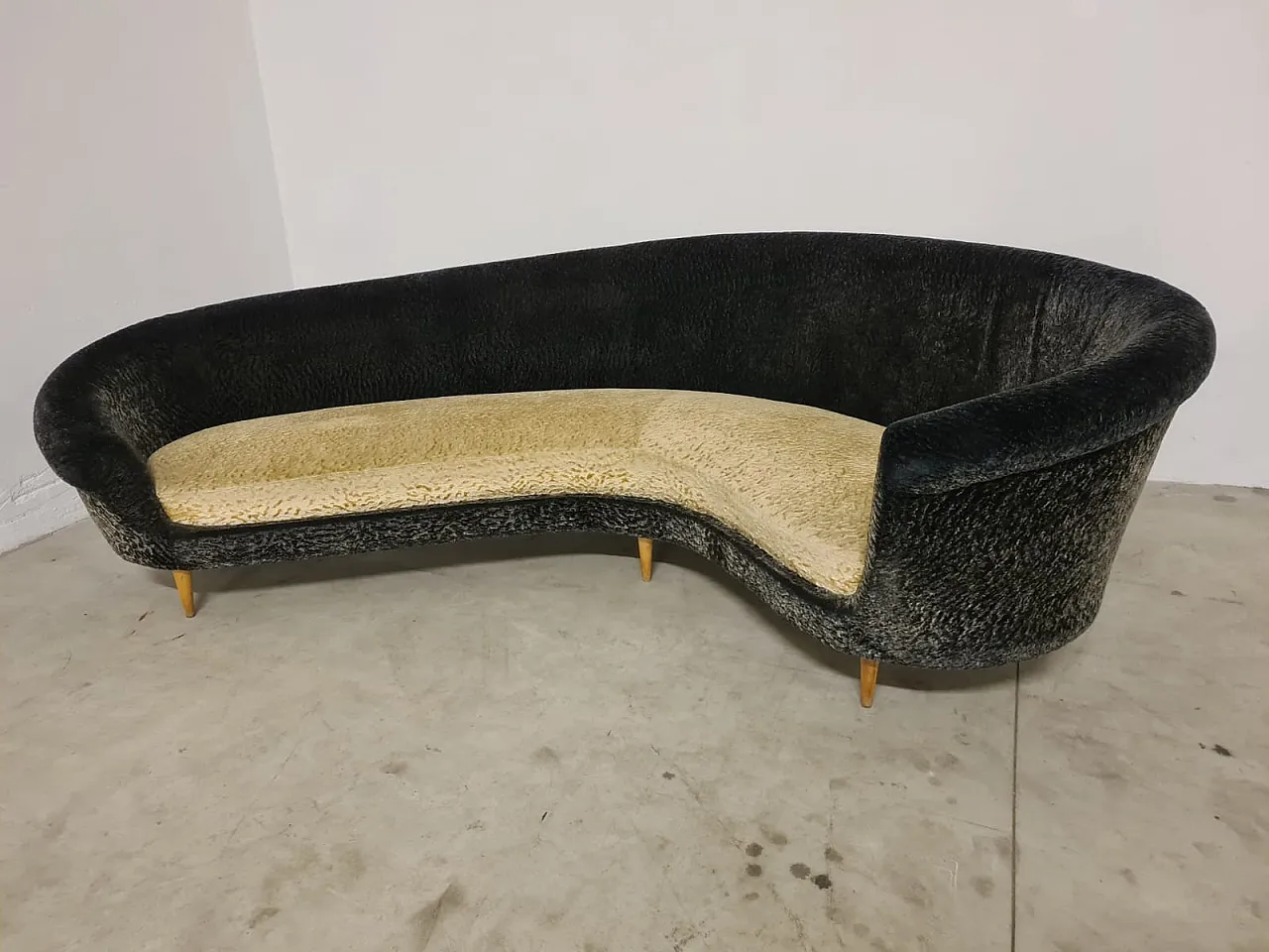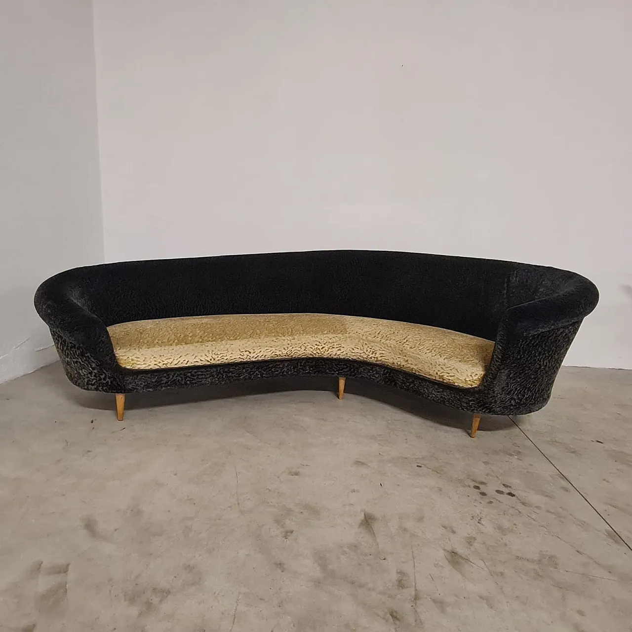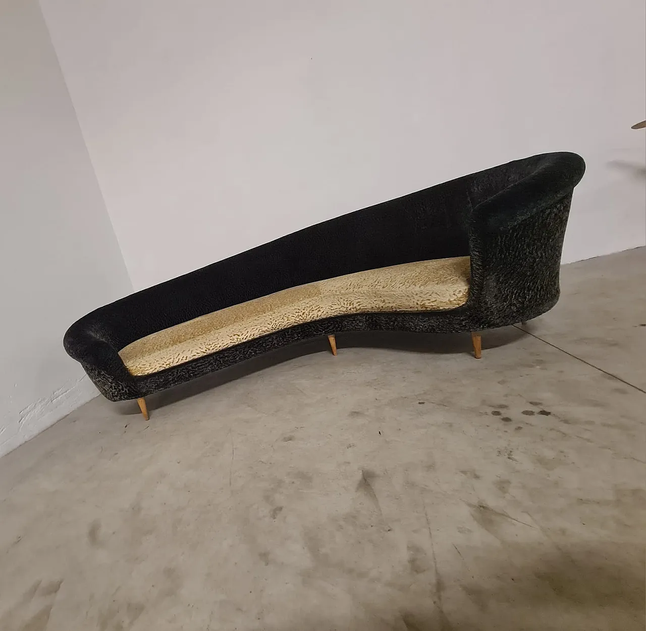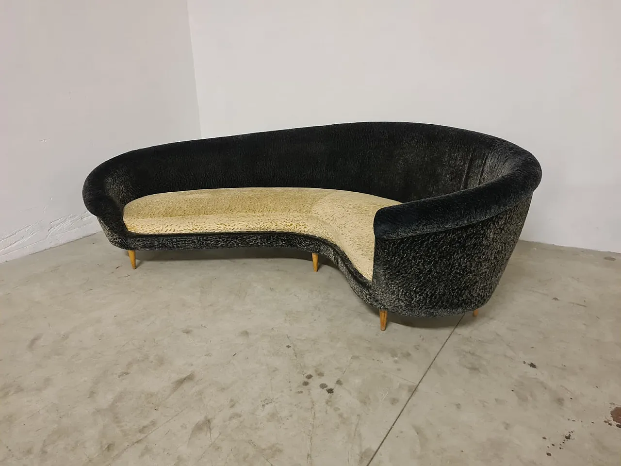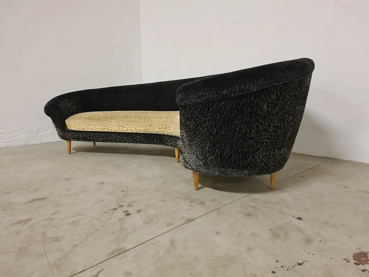 Curvo sofa by Federico Munari. Elegant curved sofa of the 1950s. Ideal for a position in the center of the room so that you can grasp the beauty of the sofa from each side. Original in each part including the fabric found in excellent conservative condition despite the age. Federico Munari was a Milanese designer and inventor who made his contribution in all fields of the visual arts. Possibility to refide it at will.