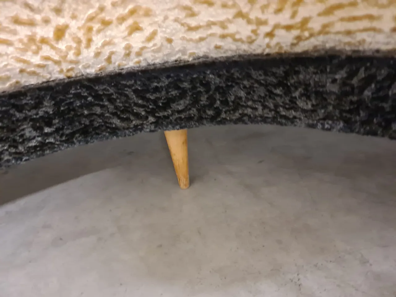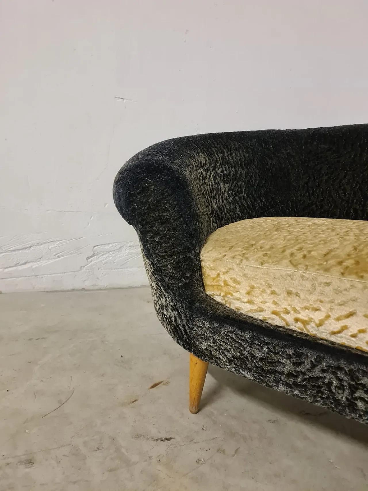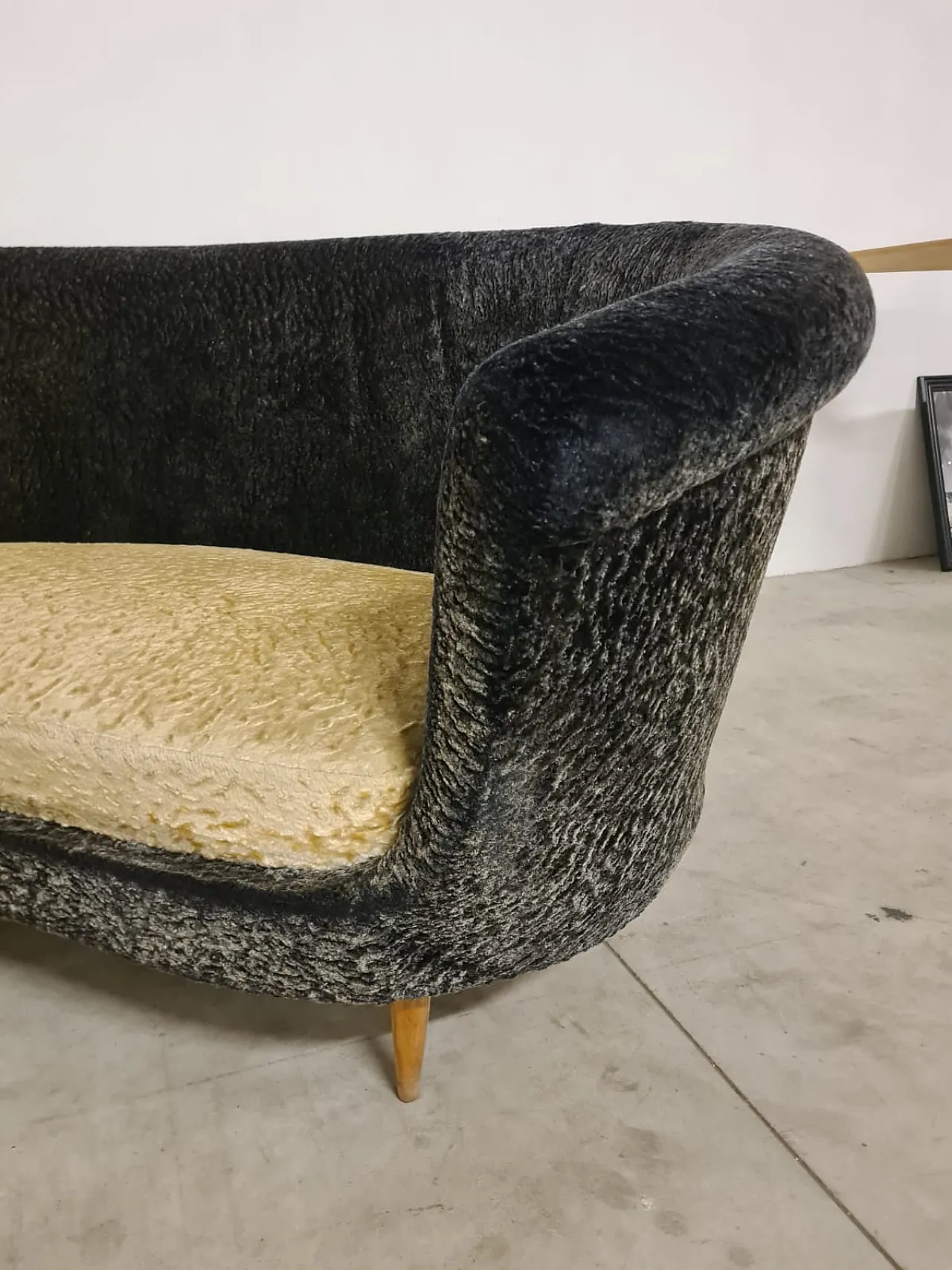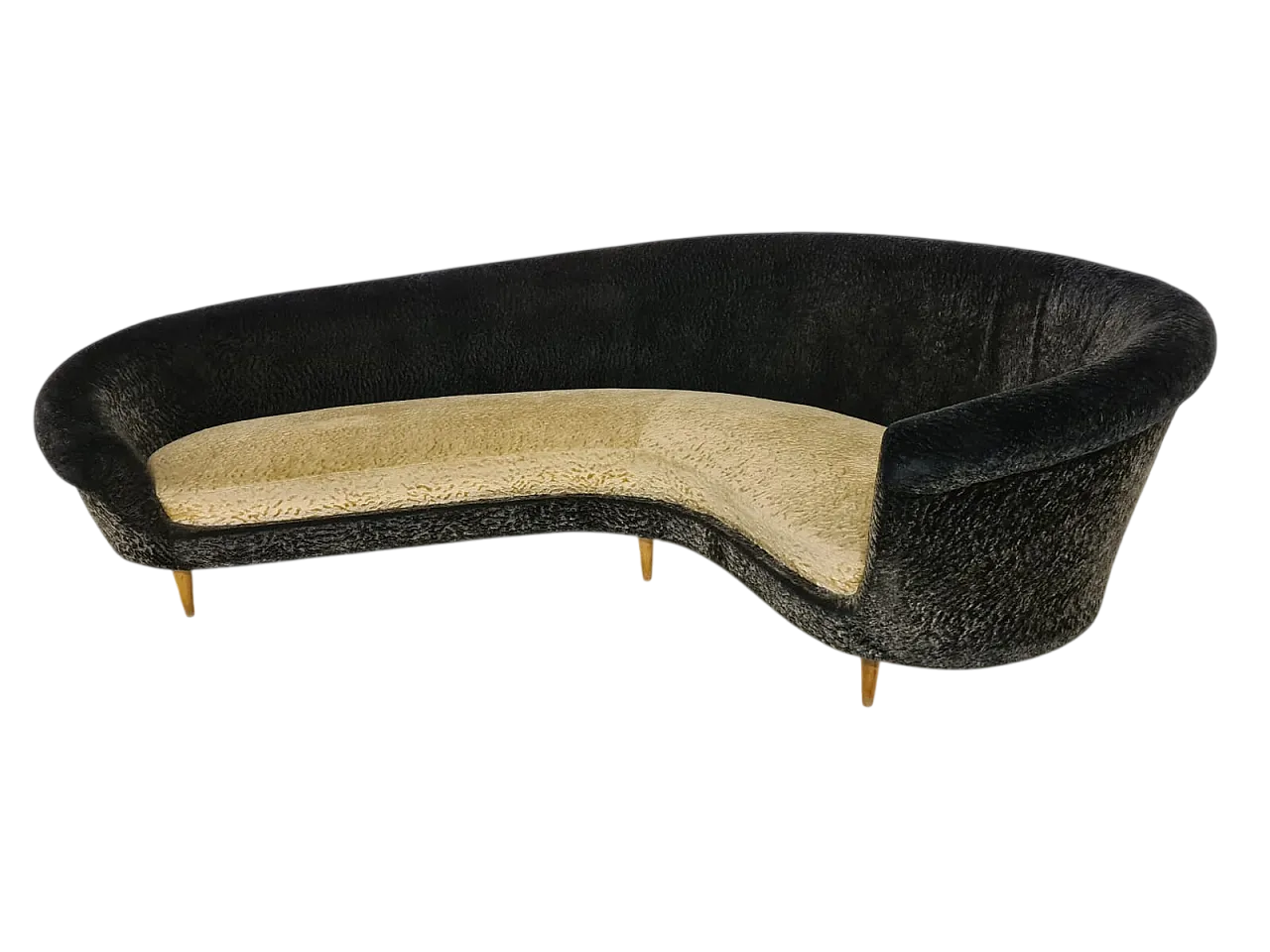 Curvo sofa by Federico Munari. Elegant curved sofa of the 1950s. Ideal for a position in the center of the room so that you can grasp the beauty of the sofa from each side. Original in each part including the fabric found in excellent conservative condition despite the age. Federico Munari was a Milanese designer and inventor who made his contribution in all fields of the visual arts. Possibility to refide it at will.